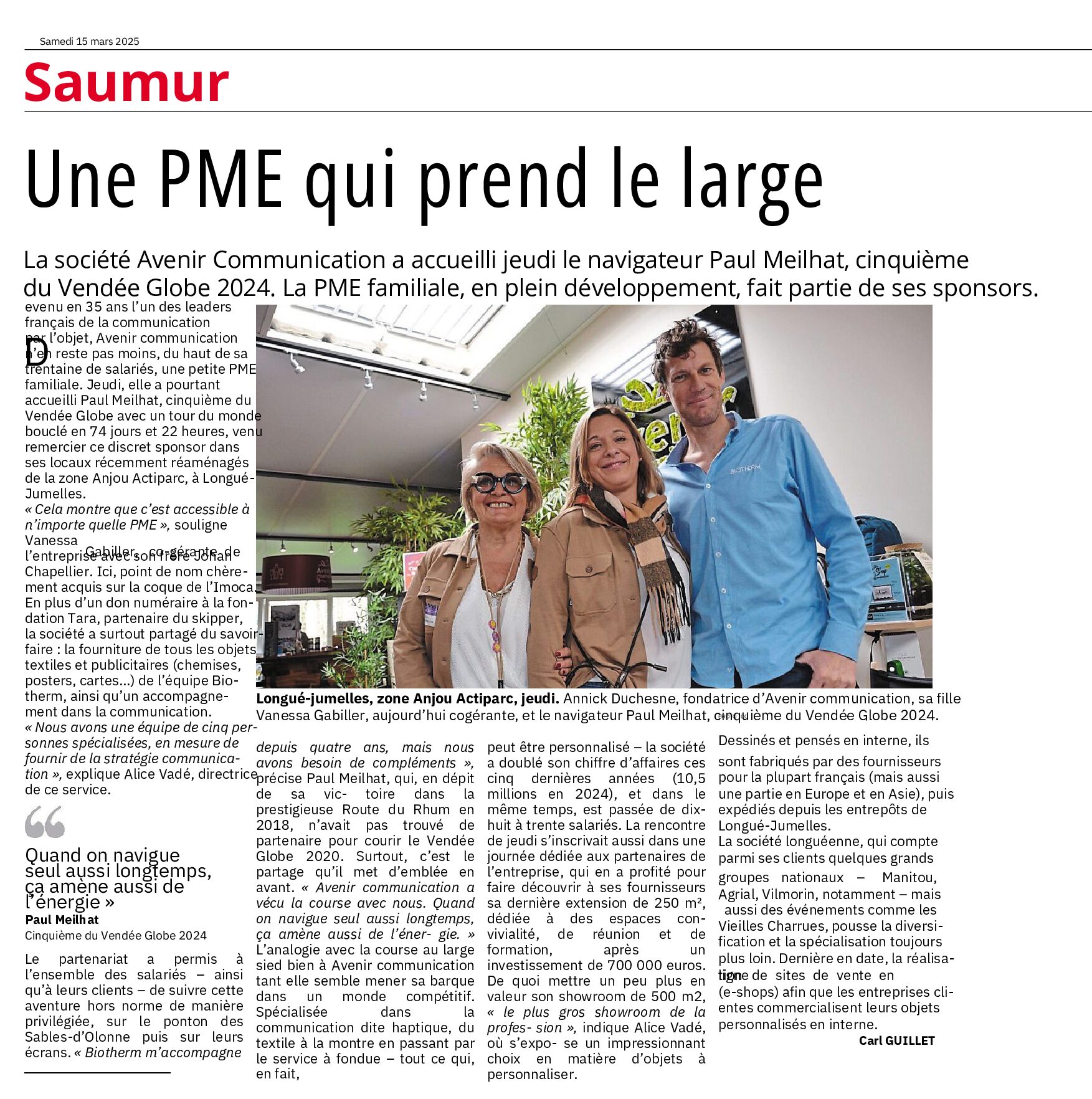 Partenaire de Paul Meilhat, un des leaders du Vendée Globe
