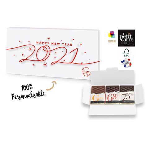Pour les amateurs de la carte de vœux au format papier, sortez de la tradition avec une carte vraiment originale et 100% personnalisée et des chocolats